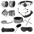 Σετ 10 Λεοπαρ Ερωτικά Αξεσουάρ Φετίχ Δεσίματος από Δερματίνη Μαύρο - Γκρι