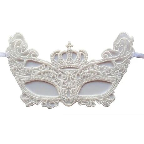 Βενετσιάνικη Υφασμάτινη Μάσκα Ματιών Μακραμέ με Δαντέλα και Κορδελάκια Λευκή