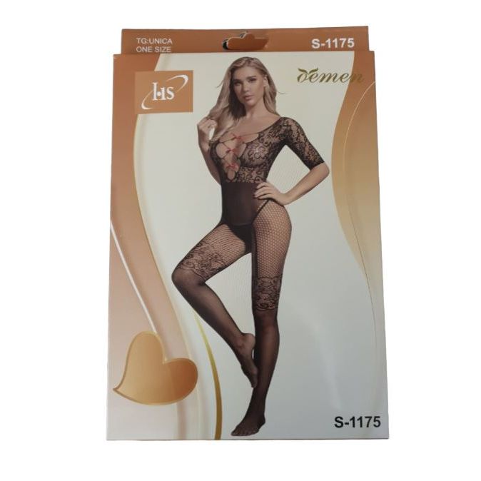 HS Αισθησιακό Μαύρο Ολόσωμο Εσώρουχο Ελαστικό See Through με Κόκκινα Φιογκάκια στο Μπούστο One Size - Sexy Lingerie