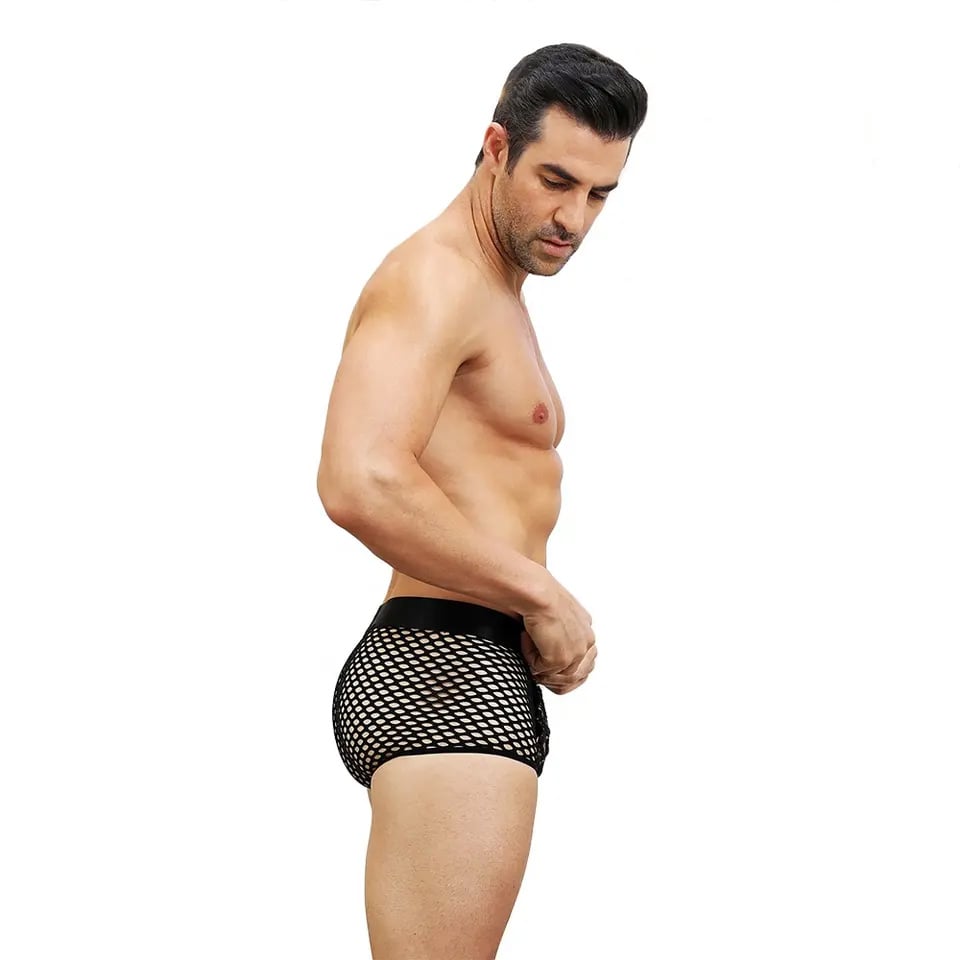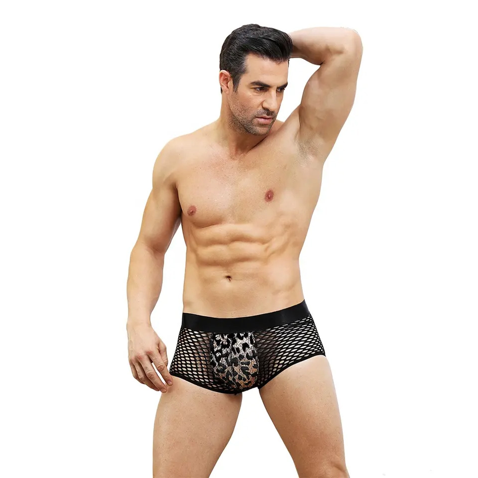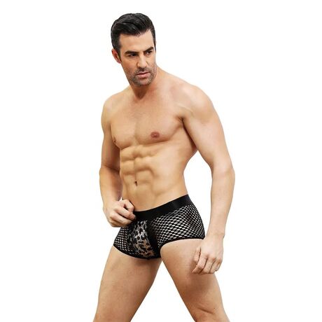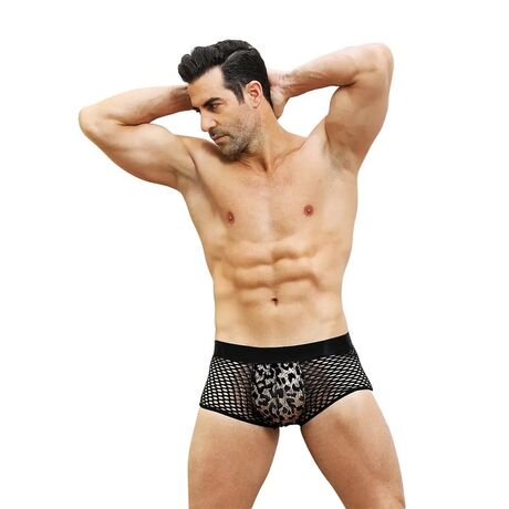Όμορφο και σέξι ανδρικό διχτυωτό διάφανο μποξέρ με λεοπάρ λεπτομέρεια.