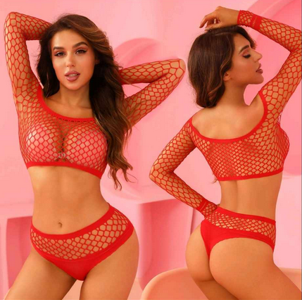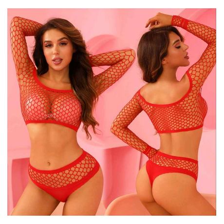 Σετ Αισθησιακό Γυναικείο Διχτυωτό Μπικίνι - Εσώρουχο με See Through Μακρυμάνικο Τοπ Sexy One Size Ελαστικό