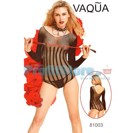 Sexy Κορμάκι Δίχτυ με Μανίκια και Κάθετες Γραμμές VAQUA-81003 - Sexy Lingerie Bodystockings