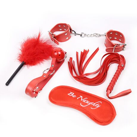 Αυτό το σετ περιλαμβάνει 5 διαφορετικά ερωτικά αξεσουάρ από δερματίνη σε προκλητικό κόκκινο χρώμα.